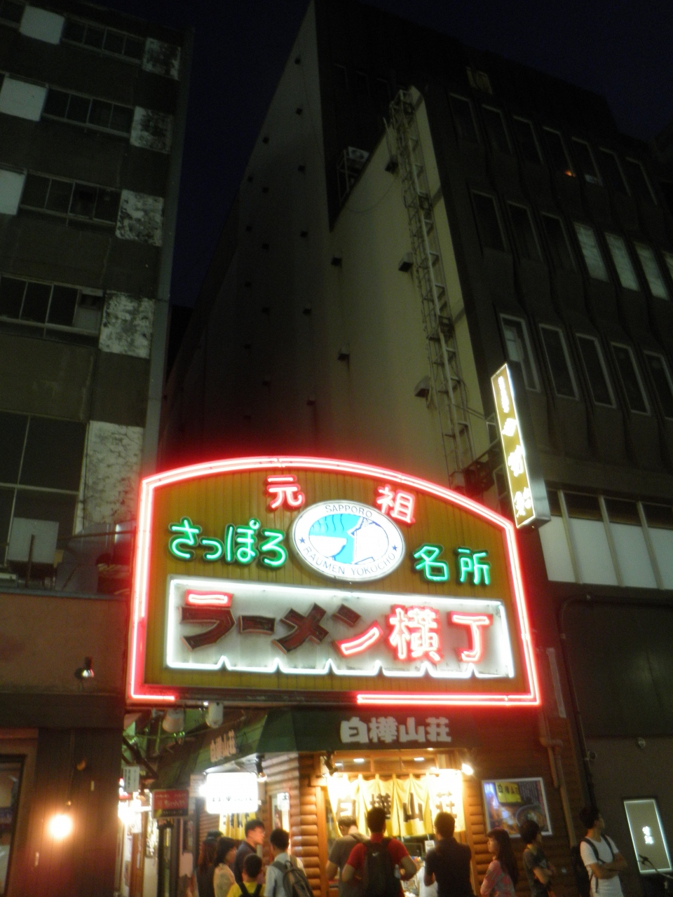 ひさしぶりに、札幌すすきののラーメン横丁に行きました。 夕方でしたが、けっこうにぎわっていましたが、外国人が多いです。 活気があっていいのですが、なぜか横丁にはいるところにあるネオンの文字が一部きれかかっていて侘しい感じもしました。