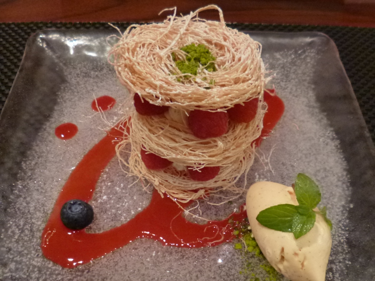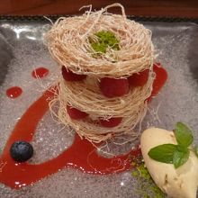 ミルフィーユは繊細で軽やかな食感、皿うどんの麺くらいかと思ってましたが、~天使の髪をつむいで~の意味が分かりました。