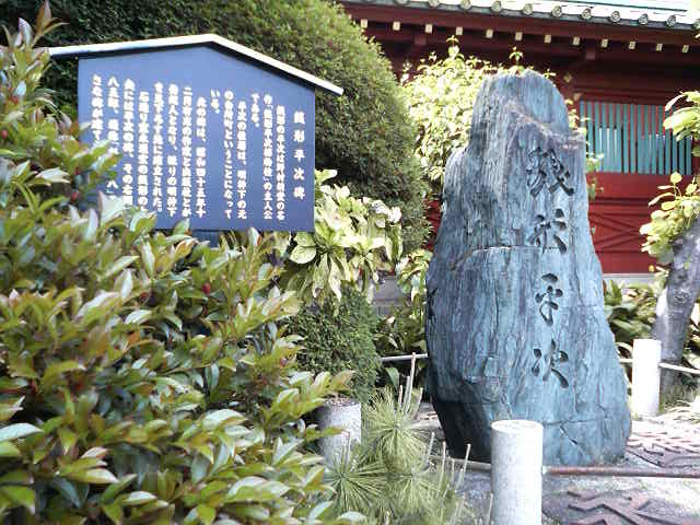 達筆で「銭形平次」と彫られた石碑で、銭形平次が神田明神界隈を舞台に活躍していたことにちなんで昭和45年に日本作家クラブが立てたものとのこと。