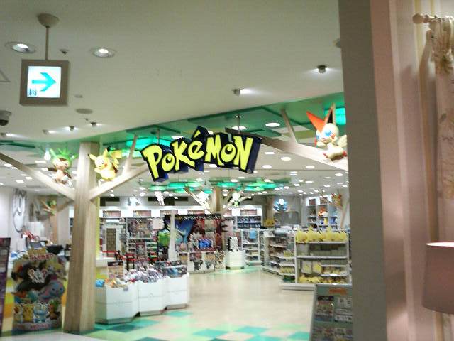 森の中を思わせる入口から入ると、店内にはピカチュウはじめ様々なポケモンのぬいぐるみやポケモンカード等の関連グッズが並び、開店直後の10時過ぎでも子連れのお客さんがちらほらいました。