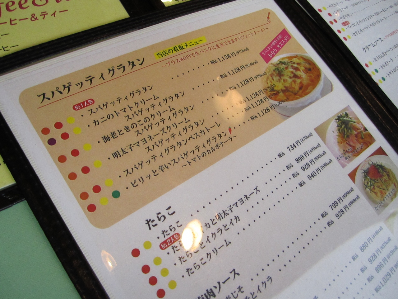 ながの東急の7階にあるパスタの専門店です。同じフロアに別のイタリア料理(チェーン店)があるだけに、パスタのゆで加減や辛さの強さなどを細かくアレンジできるように差別化を図っているようです。看板メニューは「スパゲティグラタン」で、普通に味付けしたパスタの上にチーズをたっぷりかけてオーブンで焼き上げるという、非常に濃厚なものです。これだけで一日の摂取カロリーの何割かは摂取できてしまいそうです。一度試してみては如何でしょうか。