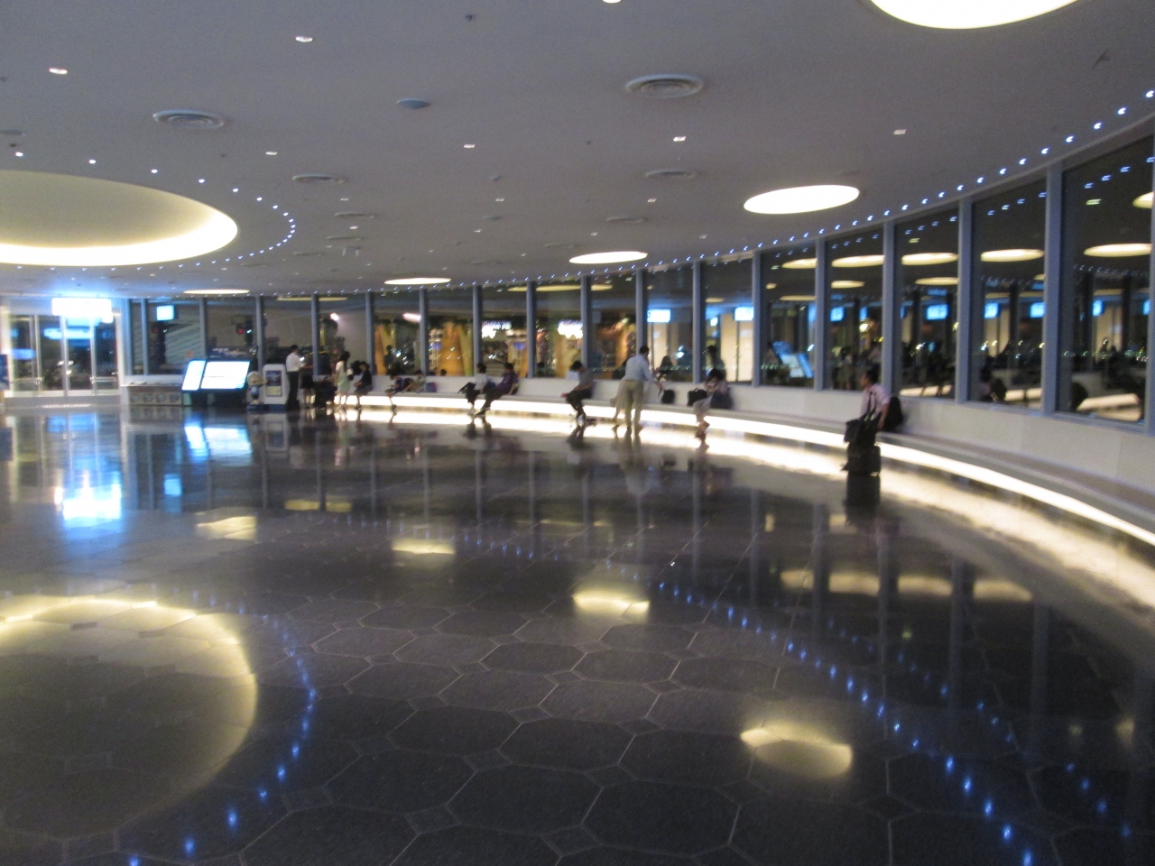 夜1時頃に出発するフライトで羽田空港国際線ターミナルを利用しました。普段、0時過ぎると空港ターミナル内、展望デッキの人はまばらになりますが、夏季休暇が始まり子供の姿を多く見かけました。7月、8月は空港利用者が増え、混雑するものと思われます。