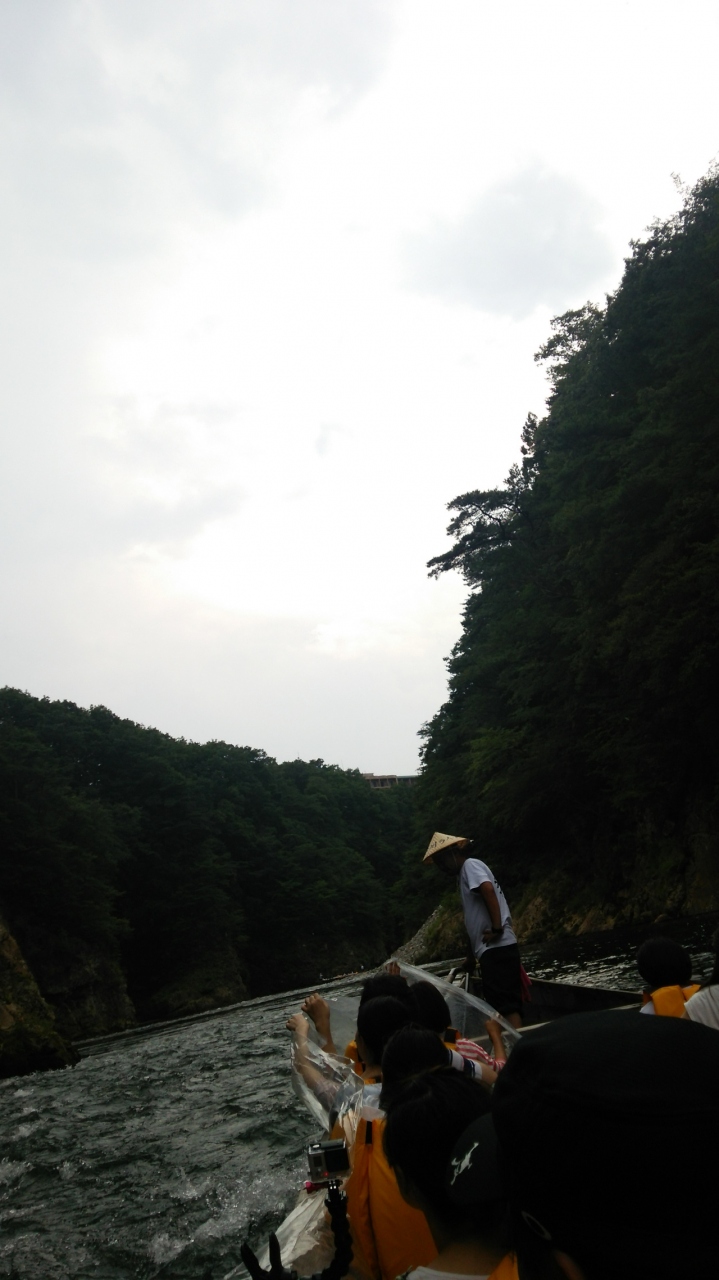 鬼怒川ライン下りは楽しい船頭さんとキレイな渓谷を眺めならか6キロぐらいだった気がします、下っていきます!!