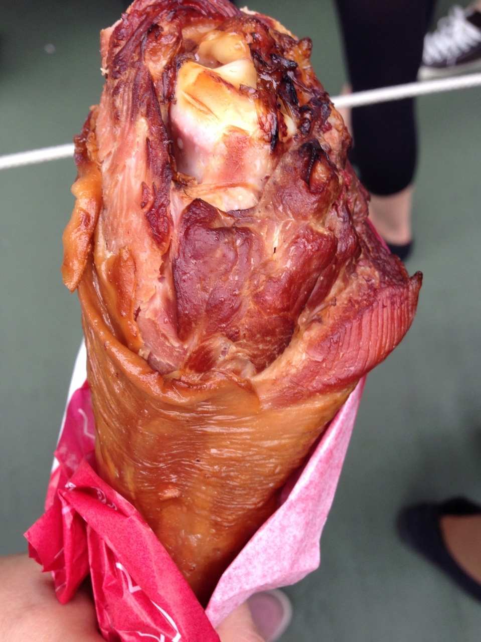 ディズニーランドに来たら必ずスモークターキーレッグを食べます。蒸気船マークトウェイン号の乗り場近くに、いつも行列ができていて、スモークターキーレッグを買うのは時間がかかると思ってる方多いと思います。でもでもそこから1分位奥に歩いた場所にある、ラッキーナゲットカフェまで行けばほとんど並ばずにスモークターキーレッグが帰るんです。比較的空いているのでイスに座って食べれます。
