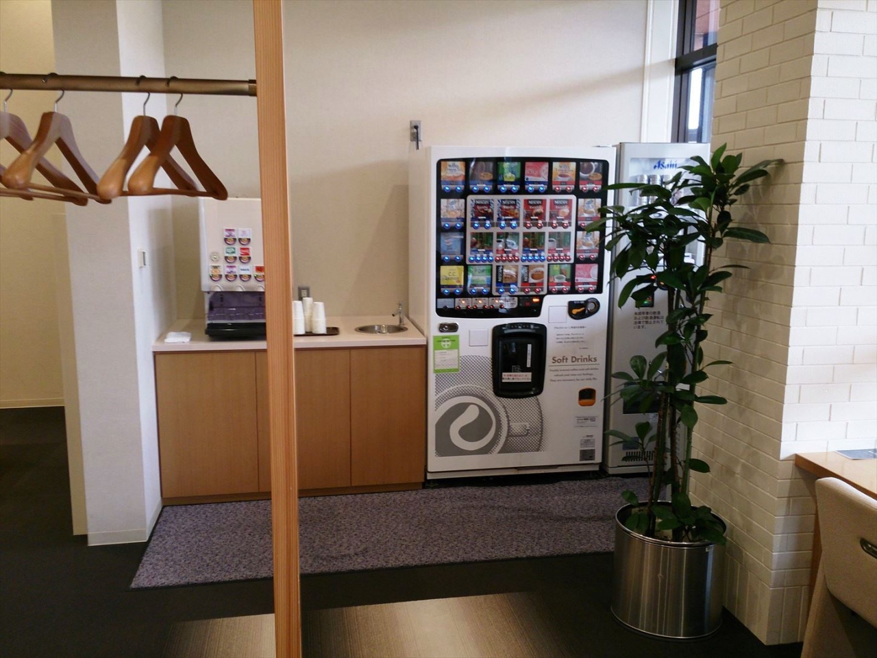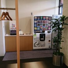 無料の自動販売機で飲み物をセルフサービスで頂きます。