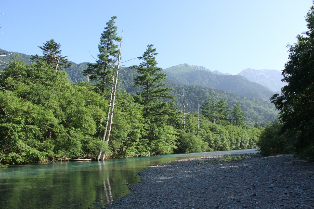 長野県松本市の北西に位置する飛騨山脈(北アルプス)槍ヶ岳に源を発し南流する。