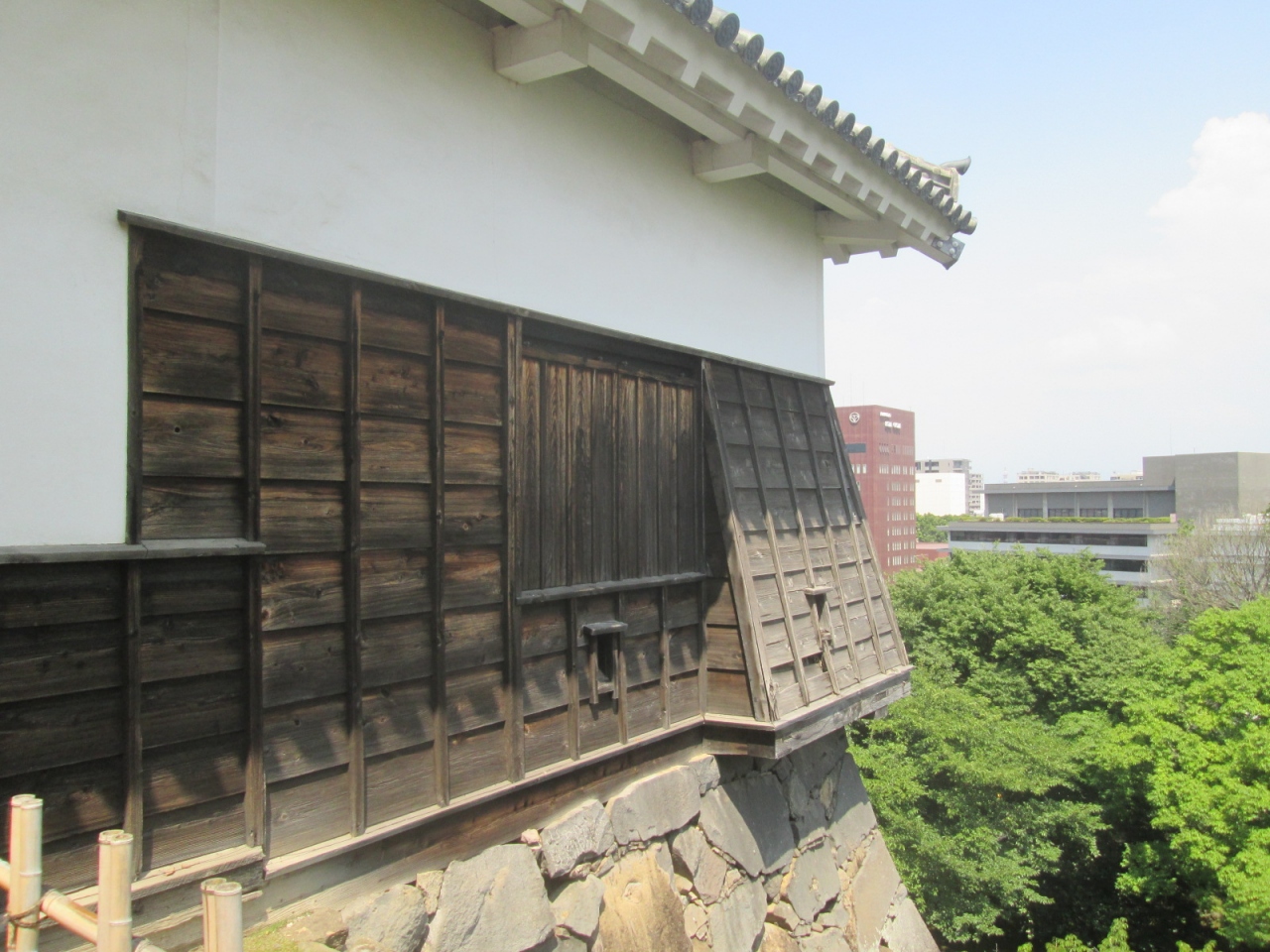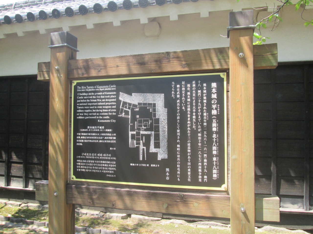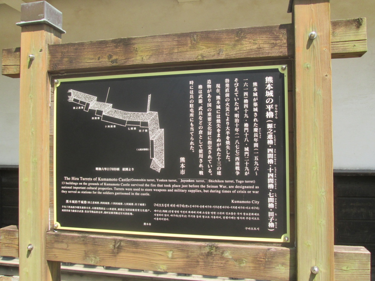 かつて「熊本城」には49棟もの櫓があったそうです。現在も戦災に耐えぬいた13棟が「櫓群」として残されています。「須戸口門」から「加藤神社」方面に歩いて行くと、石垣上には、それらの櫓群の姿を見ることができます。ただ、それぞれが重要文化財指定を受けている貴重な建物ですから、やはり城内に入場して近くで見たいものです。