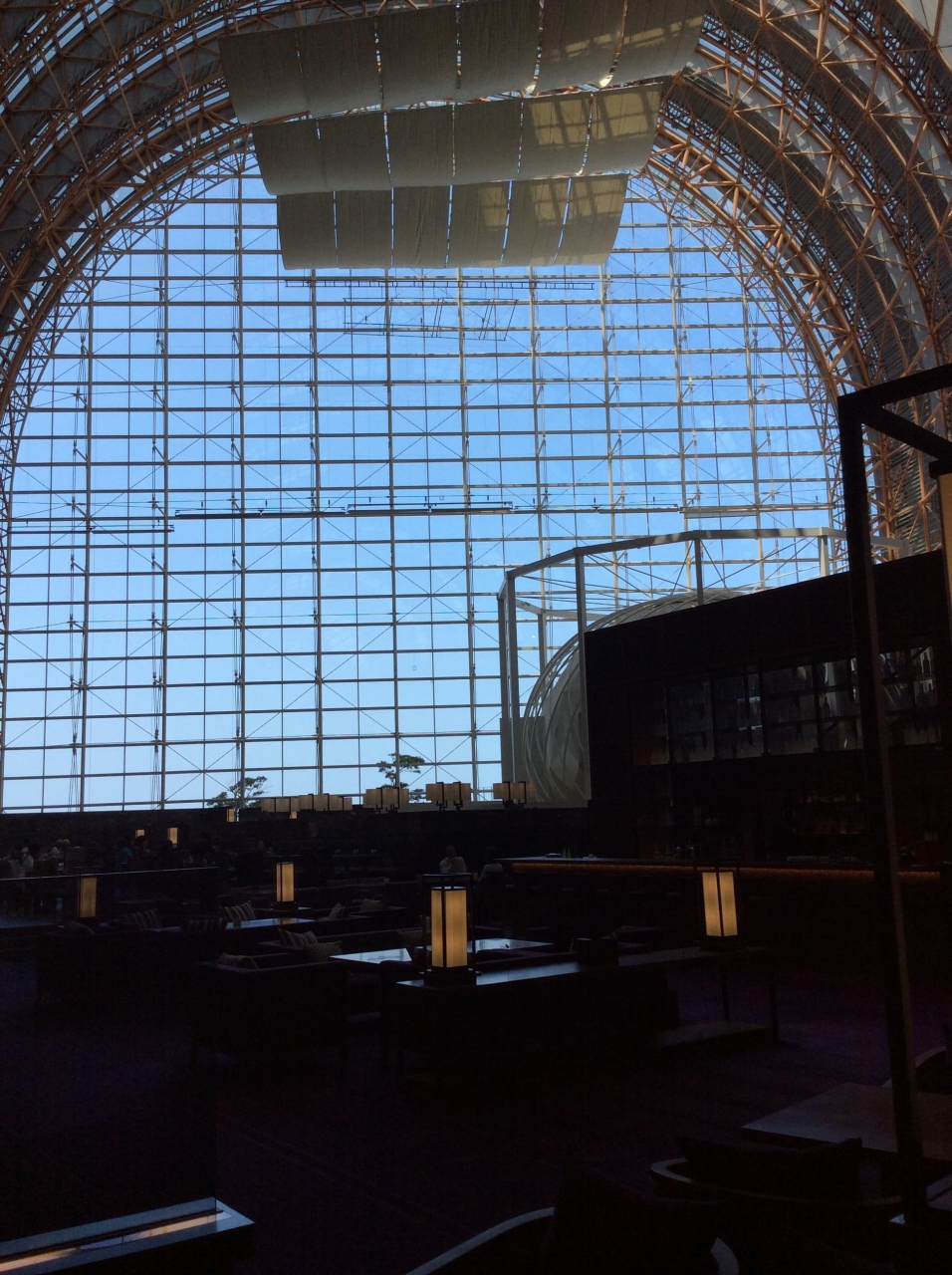 ランチブッフェの会場と比べ、ガラガラでした。大きな船のなかにいる感じが良かった。