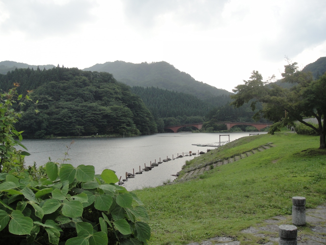 車でJR横川駅からめがね橋に向かう途中にありました。湖畔の駐車場からは、めがね橋に似た形の橋が2つ架かっているのが見えました。地元のタクシー運転手さんによると、ここは紅葉の時期がおすすめだそうです。湖の周囲をめぐるハイキングコースもあり、天候がよければ気持ちよく散歩ができそうな雰囲気でした。