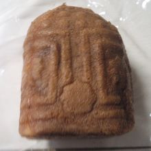 釣鐘の形をしたカステラ生地の中に白餡と黒餡が入っています。