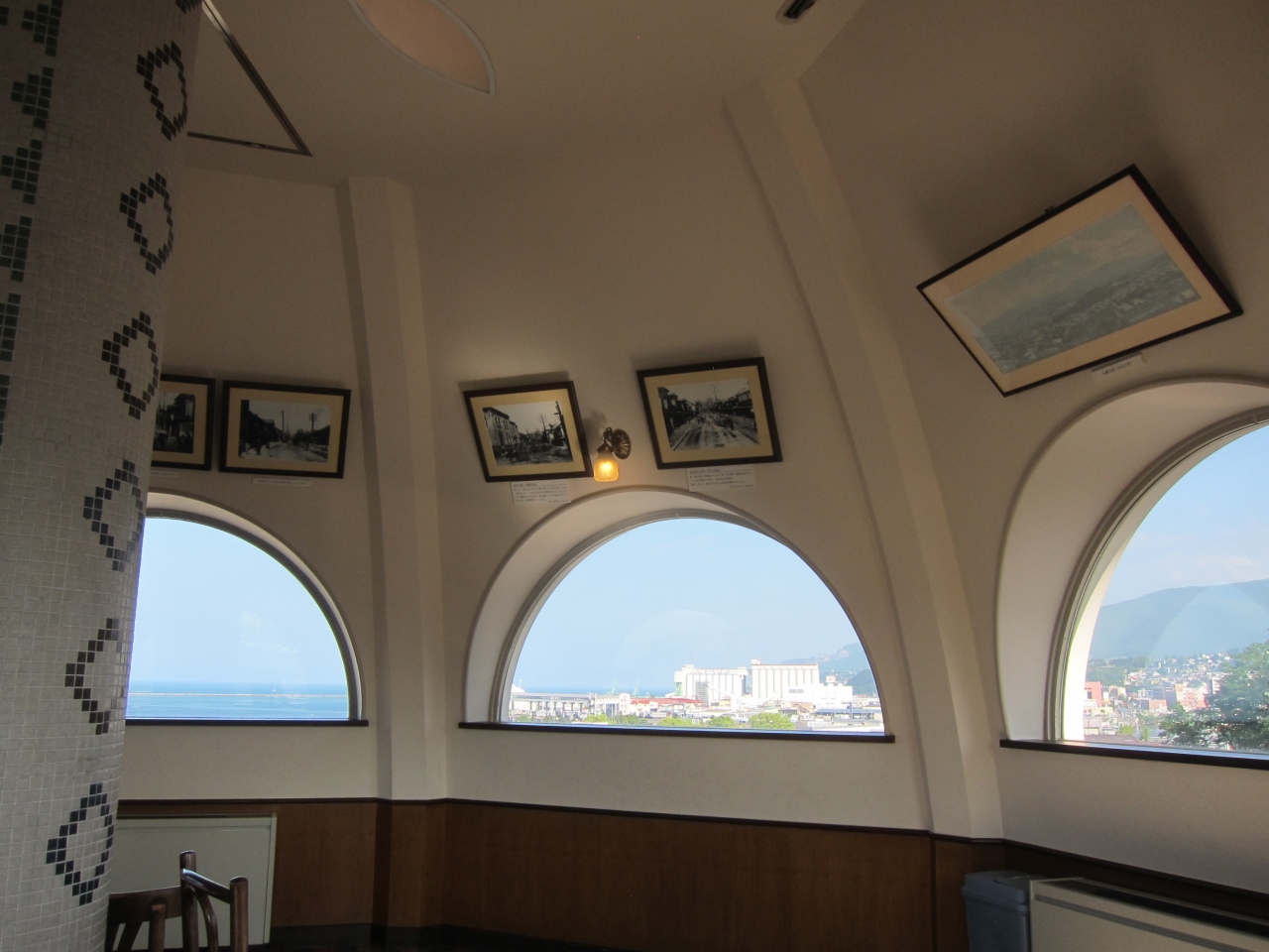 塔の上の展望室からの見晴らしが良いです。高さは、近くの高台、水天宮には及ばないものの、エレベーターで手軽に上がることができます(エレベーターは最高点までは行かず、最後の数段は階段を登らねばなりませんが)。堺町通りや小樽港界隈の街並み、天狗山など周囲の山並みを見渡せるので、本店に来たら必訪の場所だと思います。入場無料です。