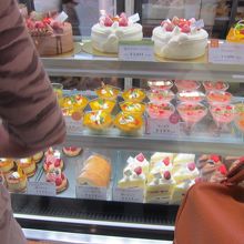 1階は店舗、2階はカフェです。カフェでは1階のケーキコーナーで販売しているものと同じものが食べられます。品定めをしてから上がっていってもよいかもしれません。カフェは、本店から100mほど堺町通りを戻ったPathos店の方は活気がありますが、本店は落ち着いて食べられる雰囲気でした。