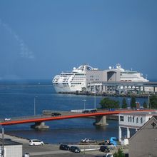 展望室では、とても景色が良いので、こんなところで食事ができたらなと思います。実は近くの北一ヴェネツィア美術館の最上階がカフェになっているので、そちらでは眺めの良い場所で食事をすることができます。同館は展示のある一部階が有料ですが、カフェ利用者は、カフェのみ入館料無しで行くことができます。