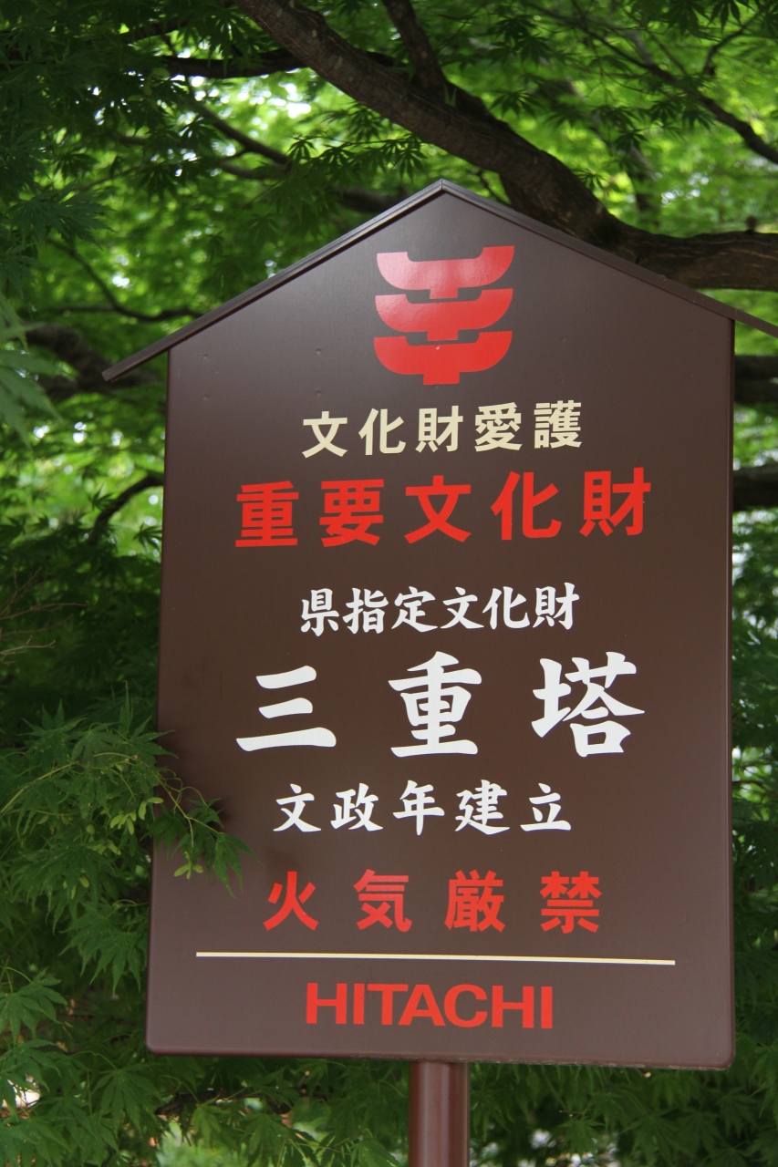 1615年(元和元年)に三重塔が再建されるが、1791年(寛政3年)に暴風雨で倒壊。1820年(文政3年)再建されたのが現在の塔である。