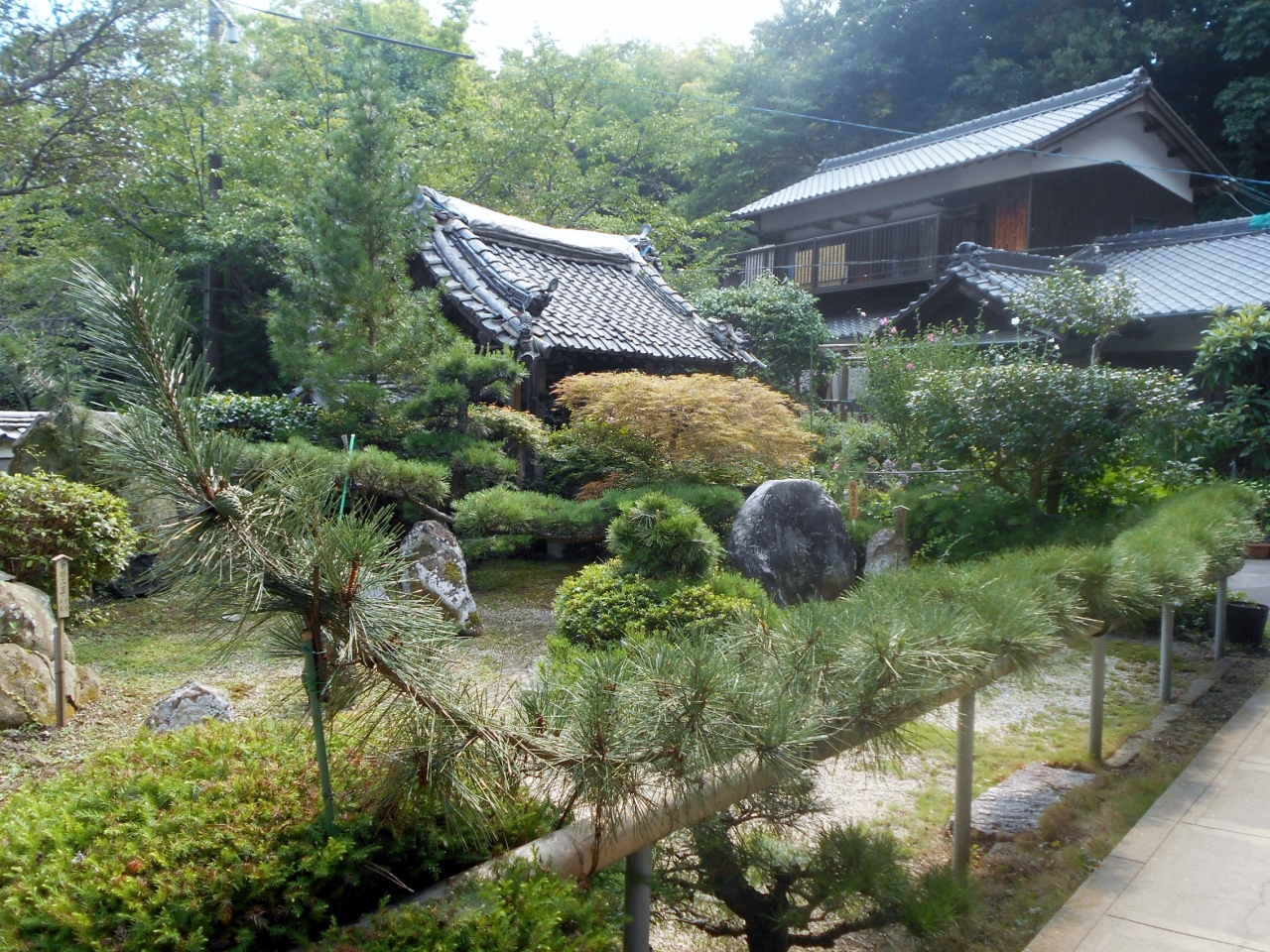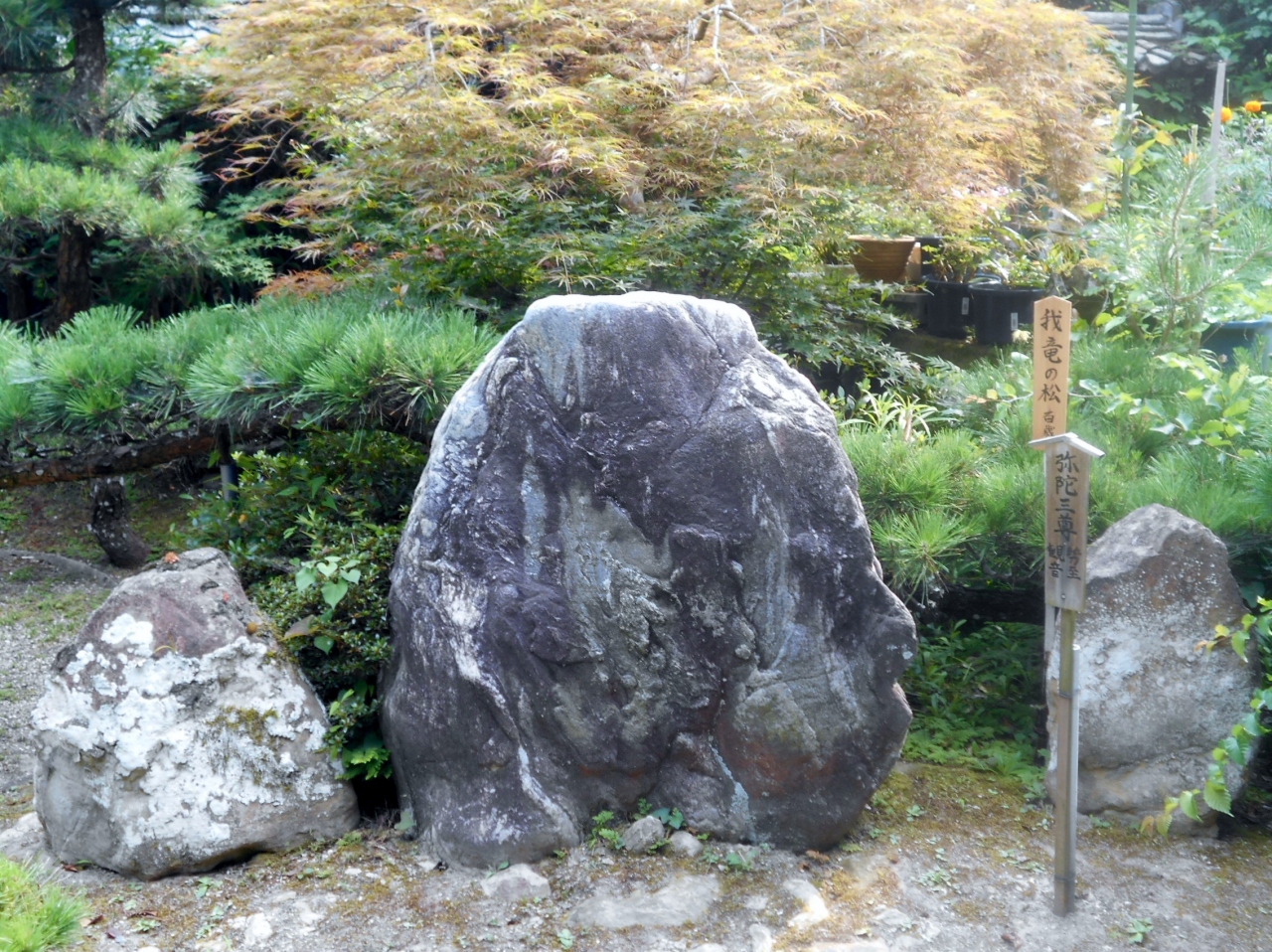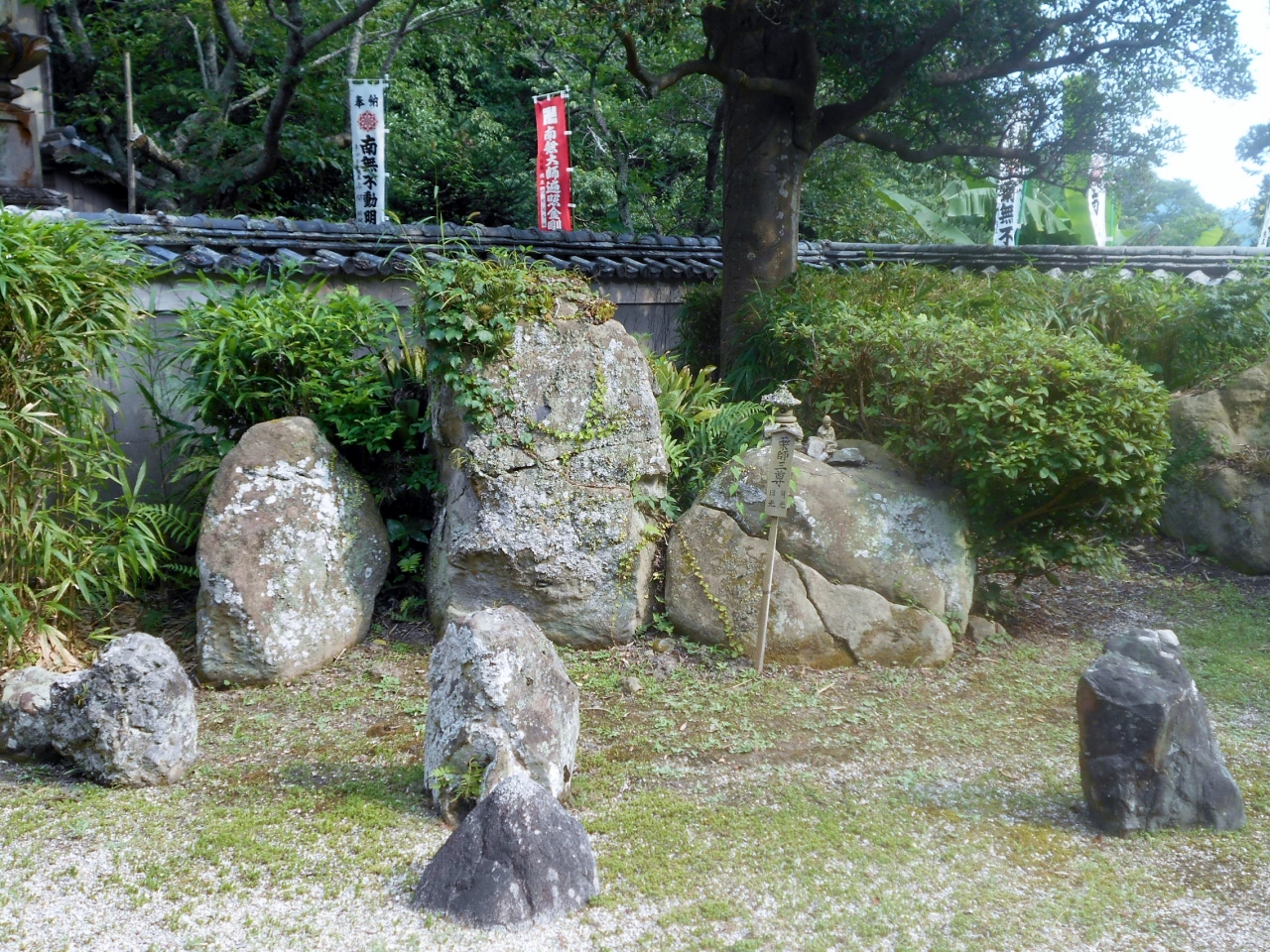 ここの見どころはなんといっても山門をぬけた右手の「枯山水庭園」。弥陀三尊・薬師三尊・釈迦三尊の三尊石と庭園を囲む松が素晴らしい景観です。