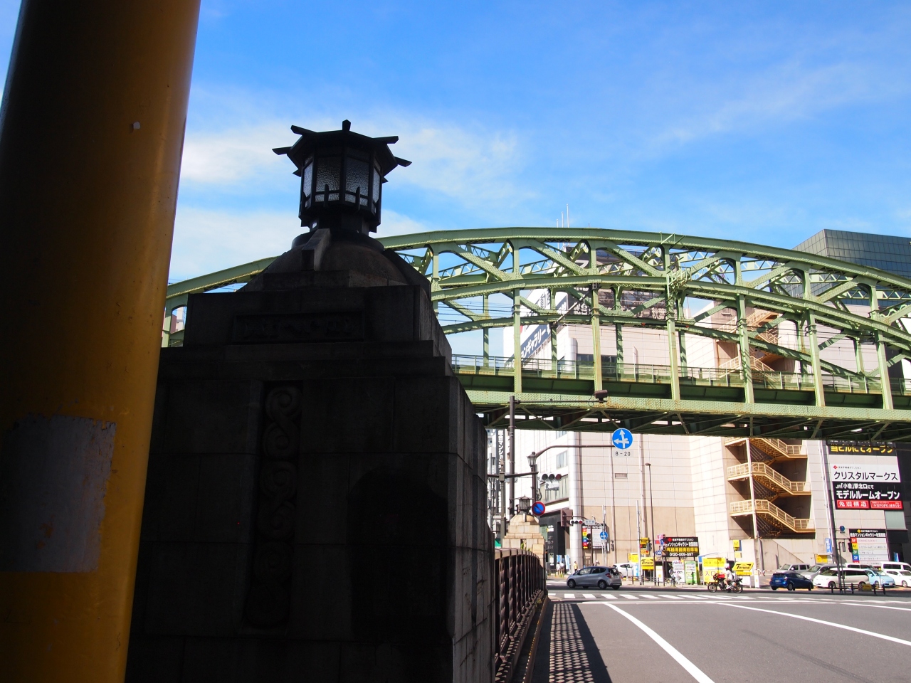 お隣の万世橋に比べると通行料は少なく、こじんまりしています。橋のすぐ近くで中央線と総武線の線路が二股に分かれているので、線路二つにはさまれたような形になり、電車とのコラボレーションが面白い橋です。