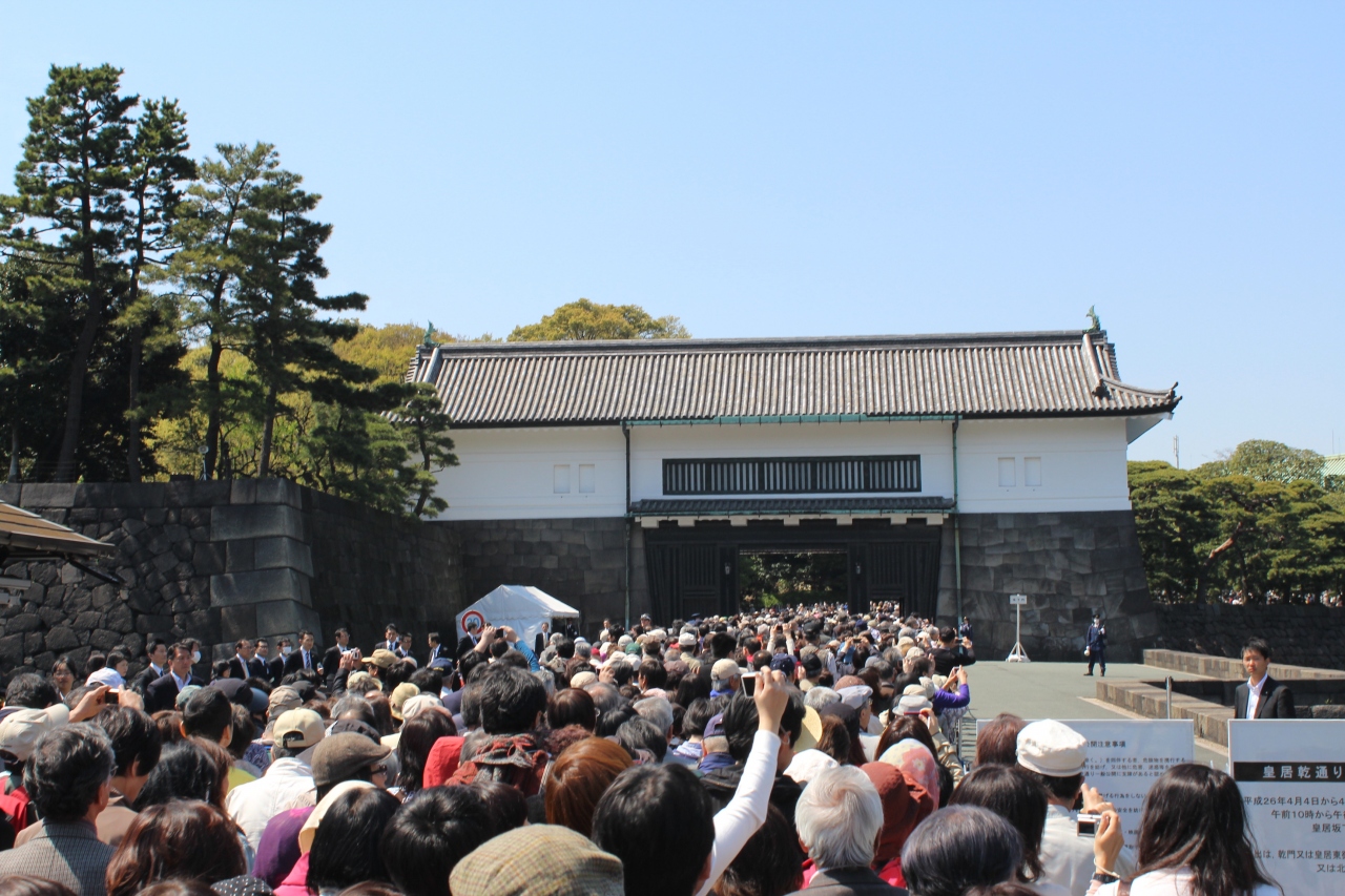 皇居に入るために通過する門です。通常は立ち入り出来ませんが、乾通り一般公開の時開放されました。しかしながら、乾通りの一般公開は初めてとあって、人出が凄まじく2時間も行列に並んでやっと入れた次第です。秋にも一般公開されるようですが開門時間を早めるなどの対策を取ってほしいものです。