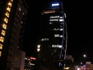 石や磋駅前店でラーメンを食べて腹が一杯になったので、万代橋まで行ってみます。途中に変わった形のビルがあり、1階が情報センターになっていて、新潟日報の本社ビルのメディアシップで、最上階は展望フロアになっています。