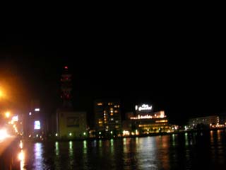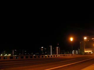 新潟駅の万代口から歩いていくとメディアシップの少し先に萬代橋があり、河口近くになって広くなった信濃川を渡っています。新潟地震のときにも倒壊することなく、重要文化財に指定されていて、対岸の夜景が見えています。