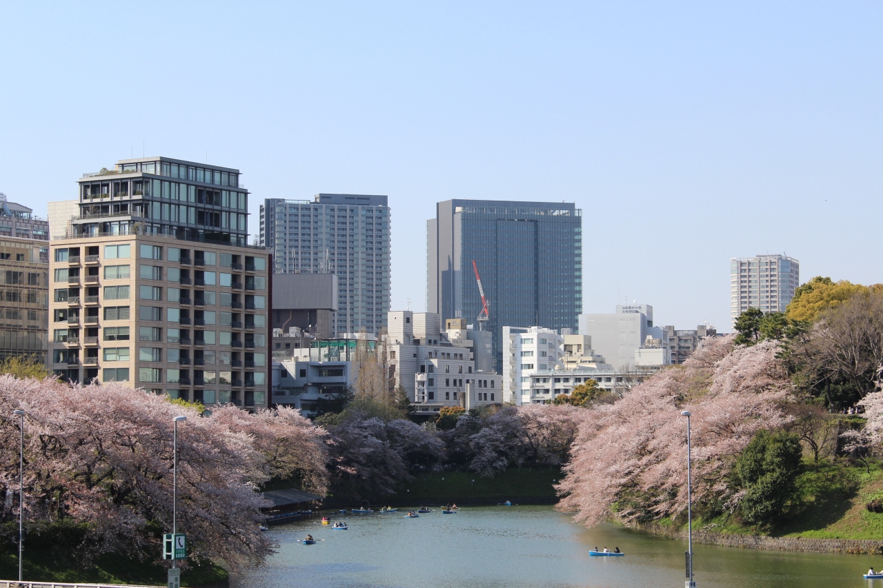 皇居乾通り一般公開見学の後、北の丸公園を通り、千鳥ヶ淵に出て花見をしました。染井吉野は散り始めていましたが、まだまだ見応えがありました。ところにより花筏も出来ており散り始めも以外に良い景色でした。ボート遊びをする人もだいぶ多い感じです。