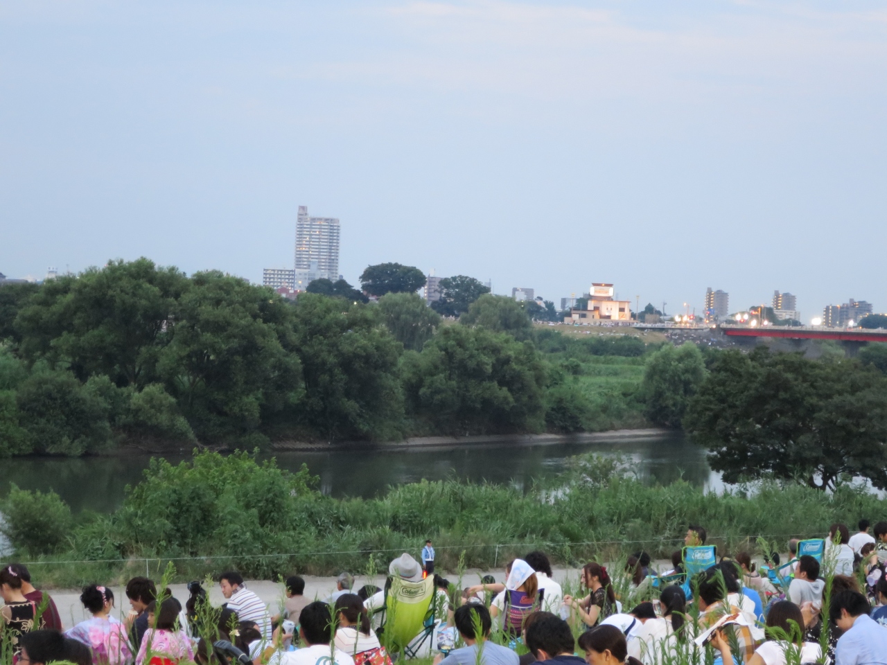 さすがに18時を過ぎると、河川敷にはもう大きな空き地を見つけるのが難しそうだったが、二人ぐらいが座れる隙間は結構残っていた。