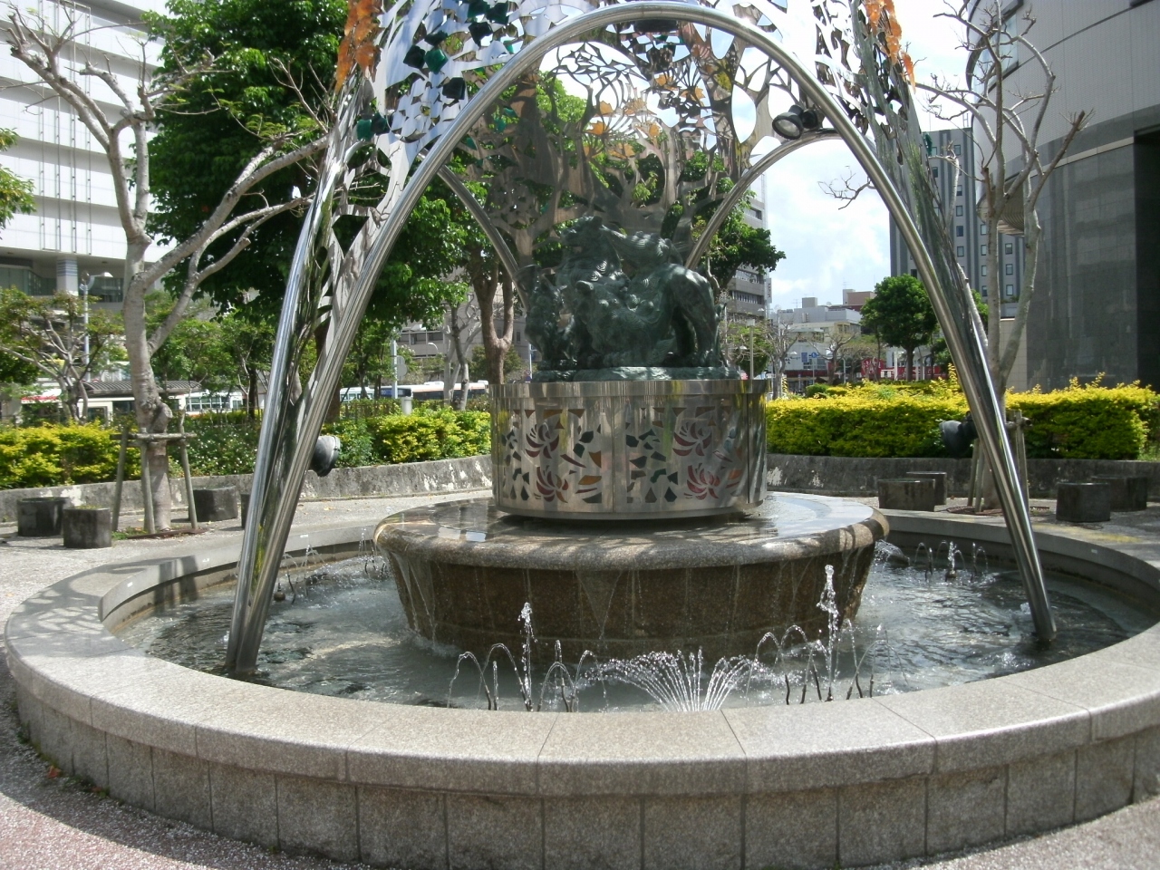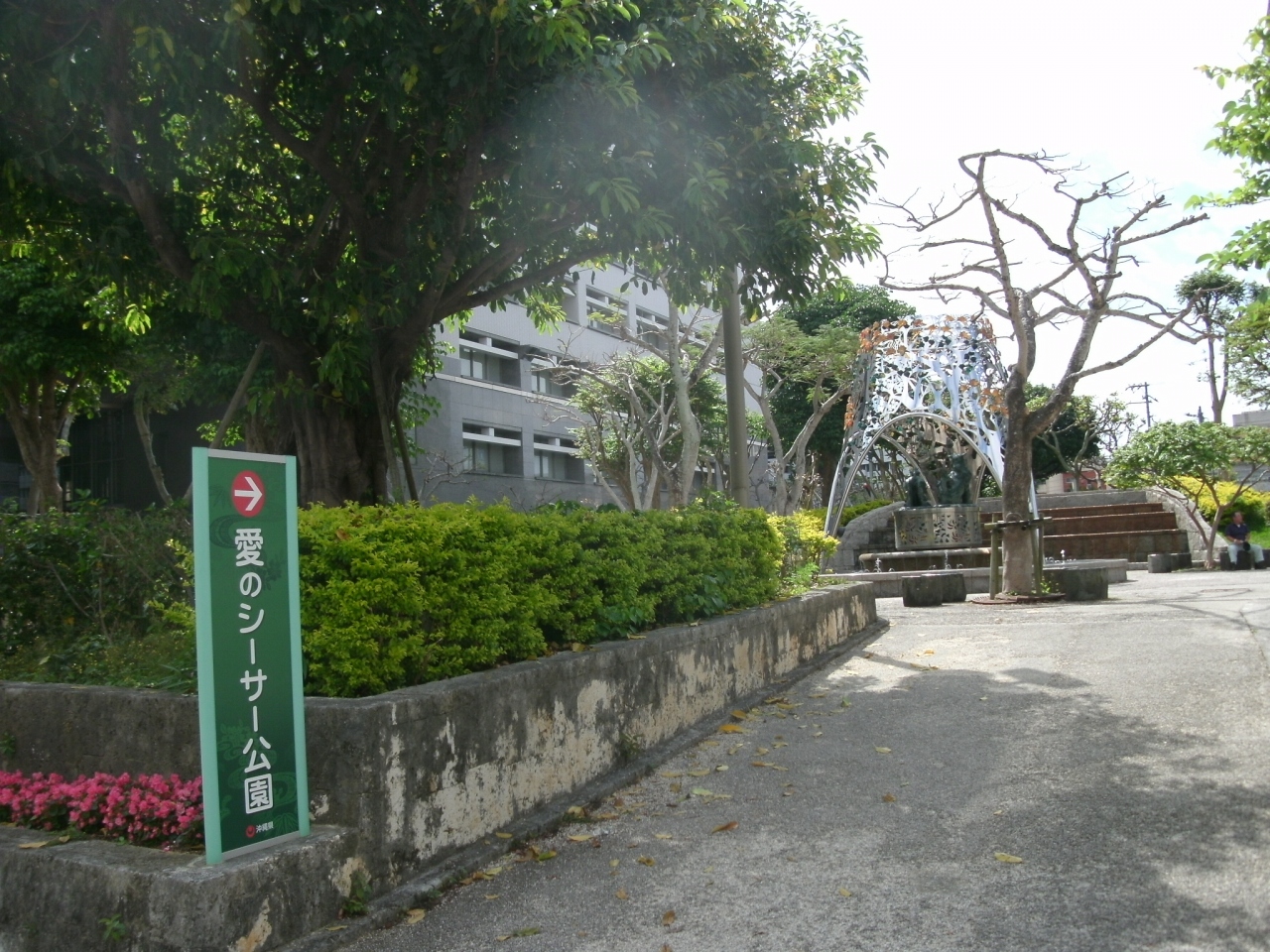 『愛の・・・』というちよっと気恥ずかしい名前だと思っていたら、公園の一角ある説明板に『沖縄の県花デイゴと泉に遊ぶこの親子シーサーは、青少年健全育成運動のシンボルとして、沖縄県をこよなく愛する多くの人々の誠意と浄財を集めて建立されました』と書いてありました。納得です。