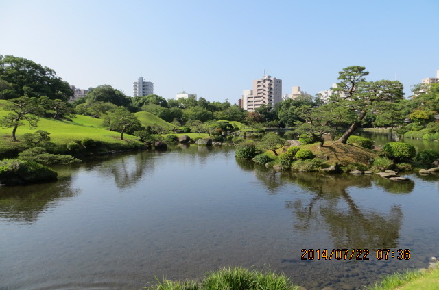 さて、庭園は回遊式で、歩いてゆくと景色が変わり、透き通った水の池には大きな鯉が泳いでおり、散歩していると解放感があります。