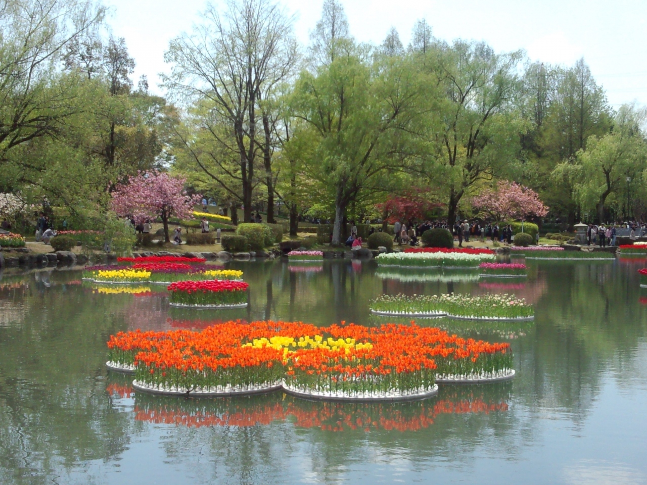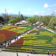 チューリップタワーに上るとハート型や円形花壇が見渡せすごくきれいです。後、水上花壇や水車苑等いろいろ工夫がされていて見ている事が嬉しくなります。