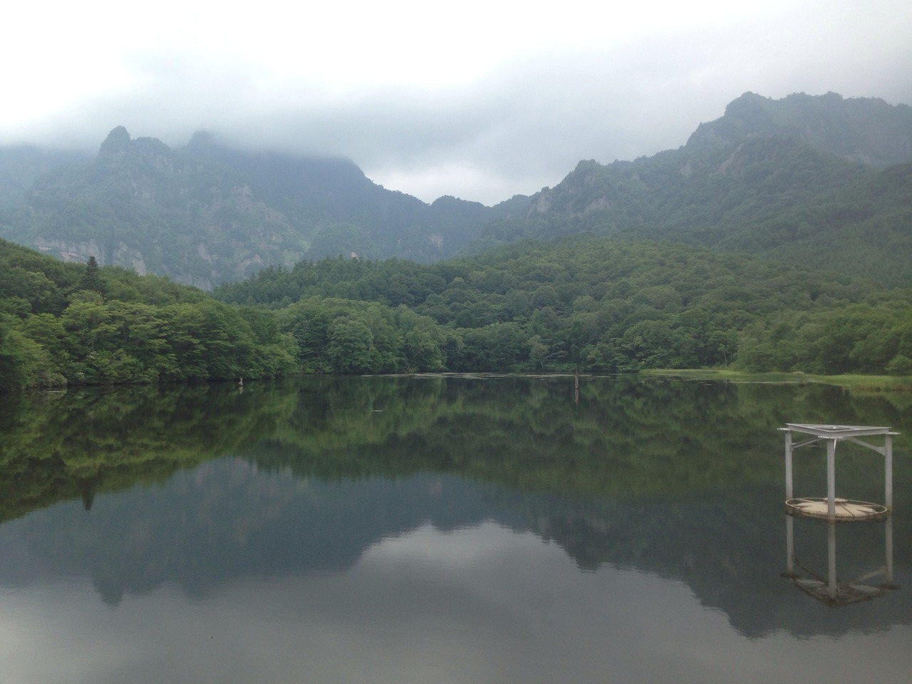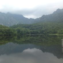 大きな池というか小さな湖に、戸隠山が見えてとても綺麗です。