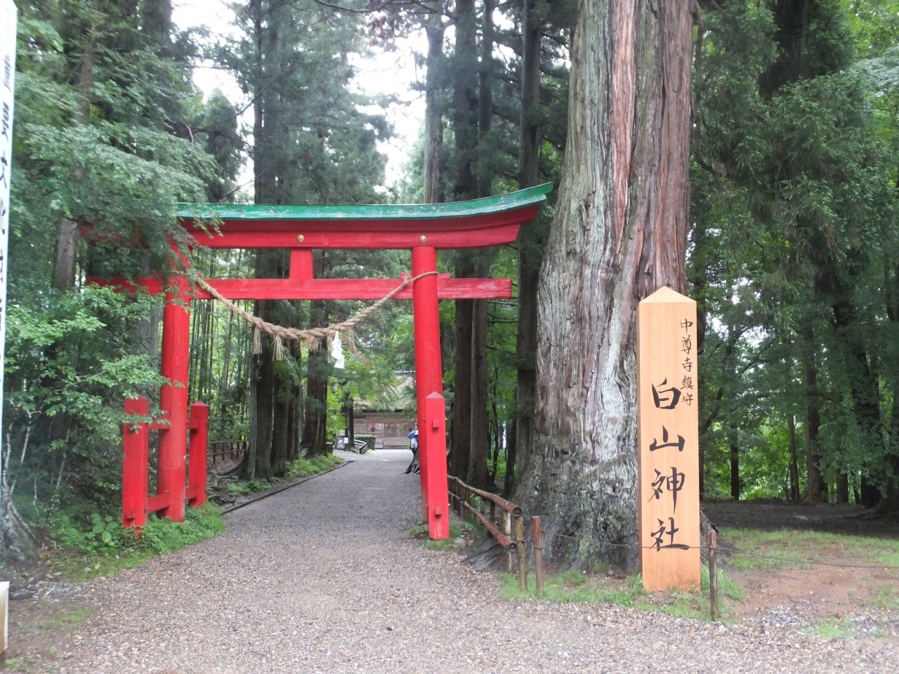 中尊寺の釈迦堂の前を通り過ぎると真っ赤な鳥居が見えるので場所はわかりやすいです。