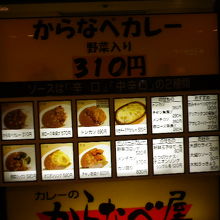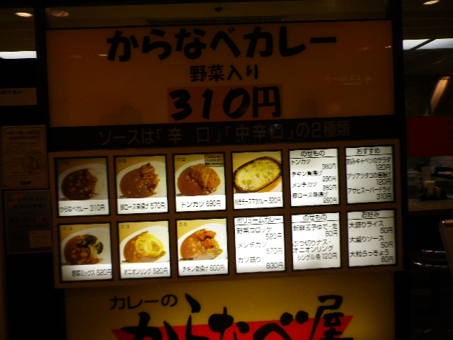 久しぶりに伺うと最安値のからなべカレーが310円にと10円値上げされていた。まあ、しかたあるまい。カウンターのみのカレー店。貿易センタービルの地下1階にあり、飛行機の搭乗までの時間が無いときには便利。