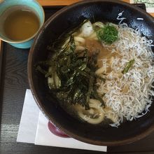 しらすうどんは、冷たいと聞いていたのに、温かい物で汗が止まりません。梅干しや大葉が入っておりさっぱりとしていました。