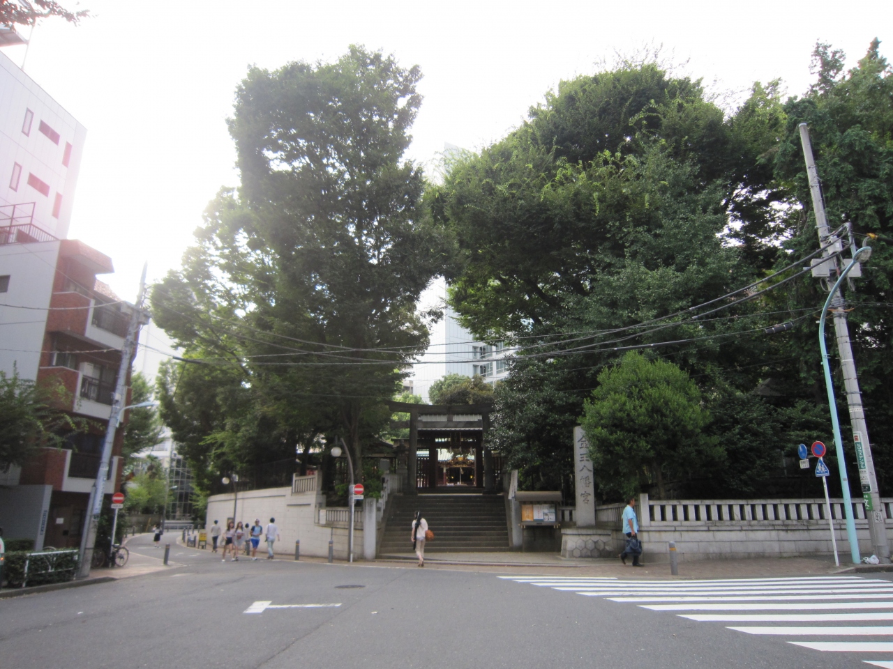 渋谷の地名の由来といわれる渋谷氏が約1000年前に創建したとされる神社です。渋谷駅東口より歩道橋を渡り六本木通りの坂を徒歩約5分、渋谷5-5-3の角を右折すれば社殿横入口、またはもう少し先の道を右折すれば正門の横に出ます。参道は別のようで正門から真直ぐ先で大鳥居がありました。石段を上ると正面に社殿があり、社殿は渋谷区指定文化財で渋谷区で一番古い木造建築、また境内には源義朝公頼朝公御縁の金王丸御影堂、玉造稲荷社、御嶽社等や宝物館がありました。宝物館は9:00から16:30入場無料、神輿等が展示しているようですが、時間切れで入れませんでした。付近は高層ビルの企業や住宅街です。仕事の休憩時間かベンチに座りスマホを見ている人が多かったです。渋谷駅の近くの由緒がある神社です。是非一度参拝して下さい。
