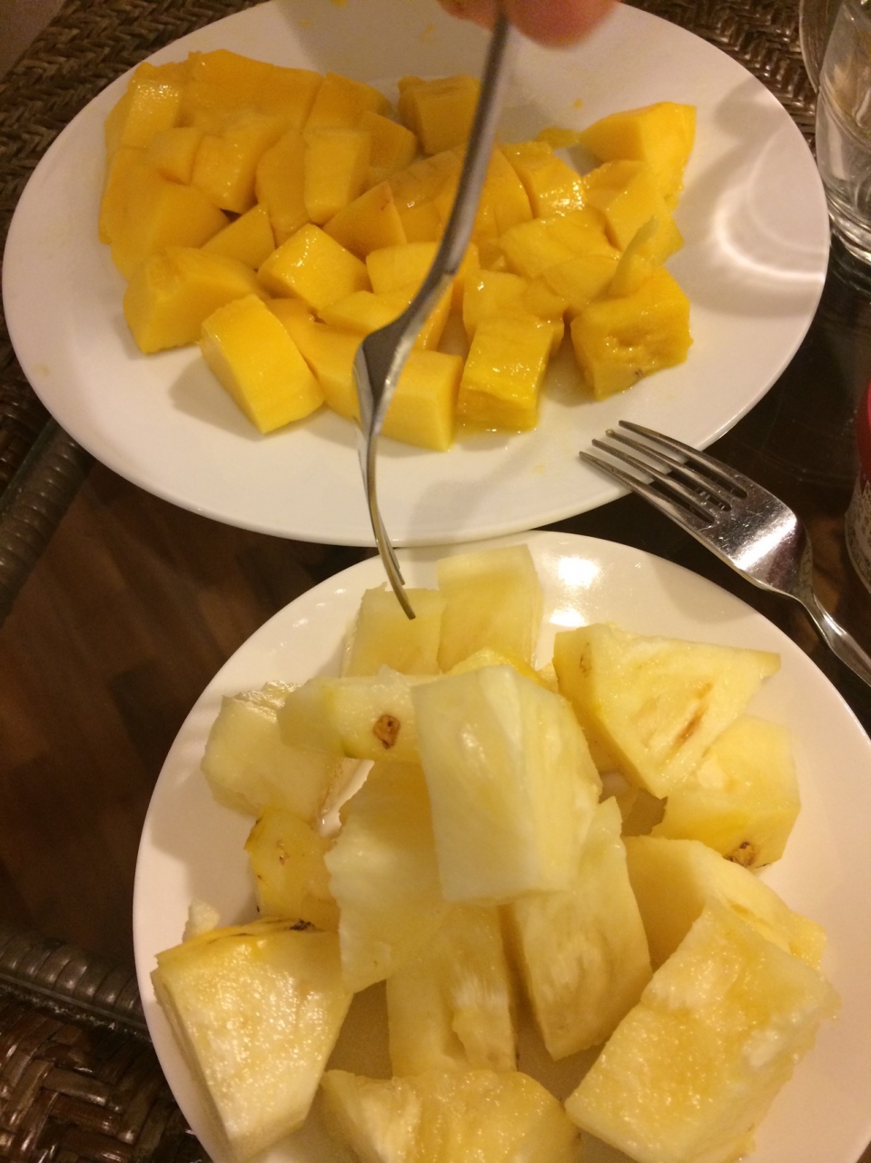 お土産用の高いフルーツもありますが、オススメは食べごろコーナーの「パイナップル&マンゴー」が値段も安くて美味しかったです。