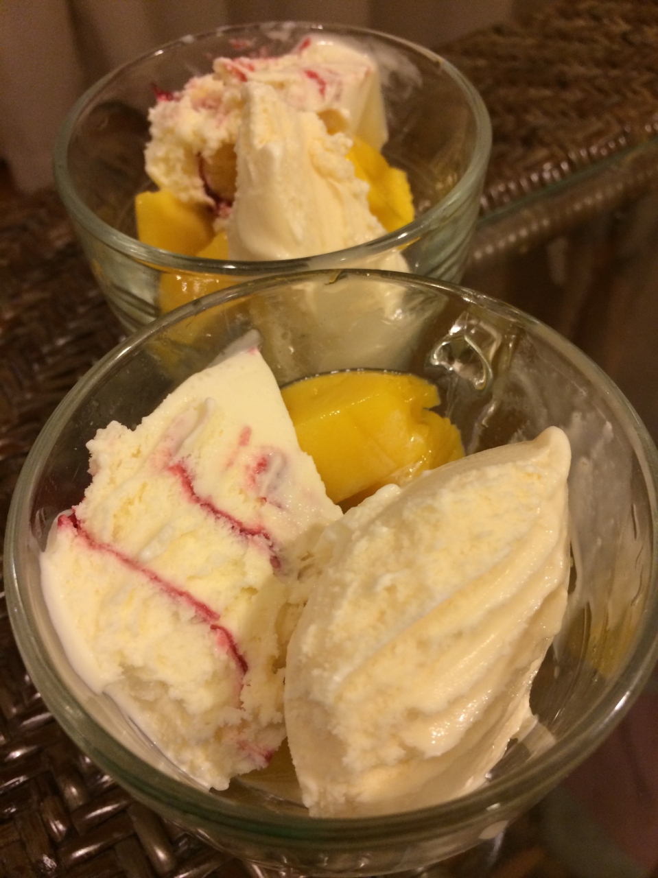ホテルで包丁、お皿、フォークを借りて別途購入したアイスクリームと一緒に食べると、旨さ倍増でした。