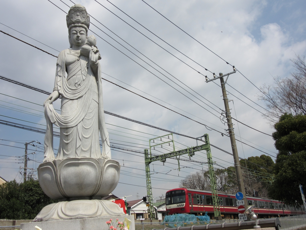 境内広く本堂周りに墓地が広がっており、その向こうは京急が走っています。