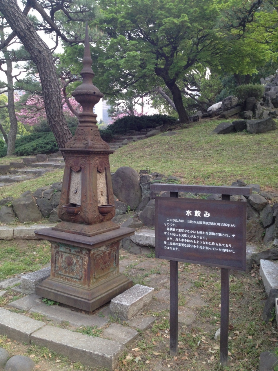 この水飲み場は日比谷公園開設当時の1903年のものです。鋳鉄製で重厚な感じではありますが、装飾も施されており、存在感があります。