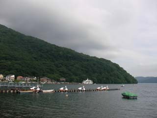 小田急箱根レイクホテルの温泉に入った後、坂道を下って桃源台に着くと、新宿行きの高速バス乗り場があり、予約したバスまで時間があるので売店に行ってビールを探すと、ノンアルコールビールしかありません。時間があるので、芦ノ湖の海岸線まで下ってみると、一昨年の夏に乗った海賊船が停泊していました。