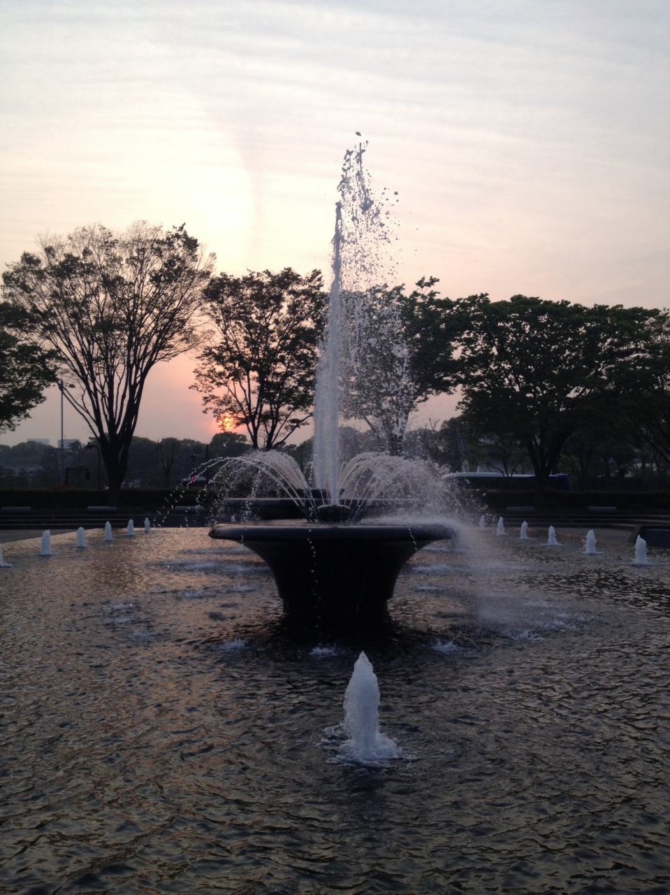 昭和36年に天皇皇后陛下ご成婚を記念して作られました公園ですが、その後、平成7年に皇太子殿下のご成婚を記念して、大噴水を再整備し、新しく造られた落水施設やモ二ュメン卜を流水施設で結ぶ形にしたようです。見た目が大変良いお勧めの公園です。