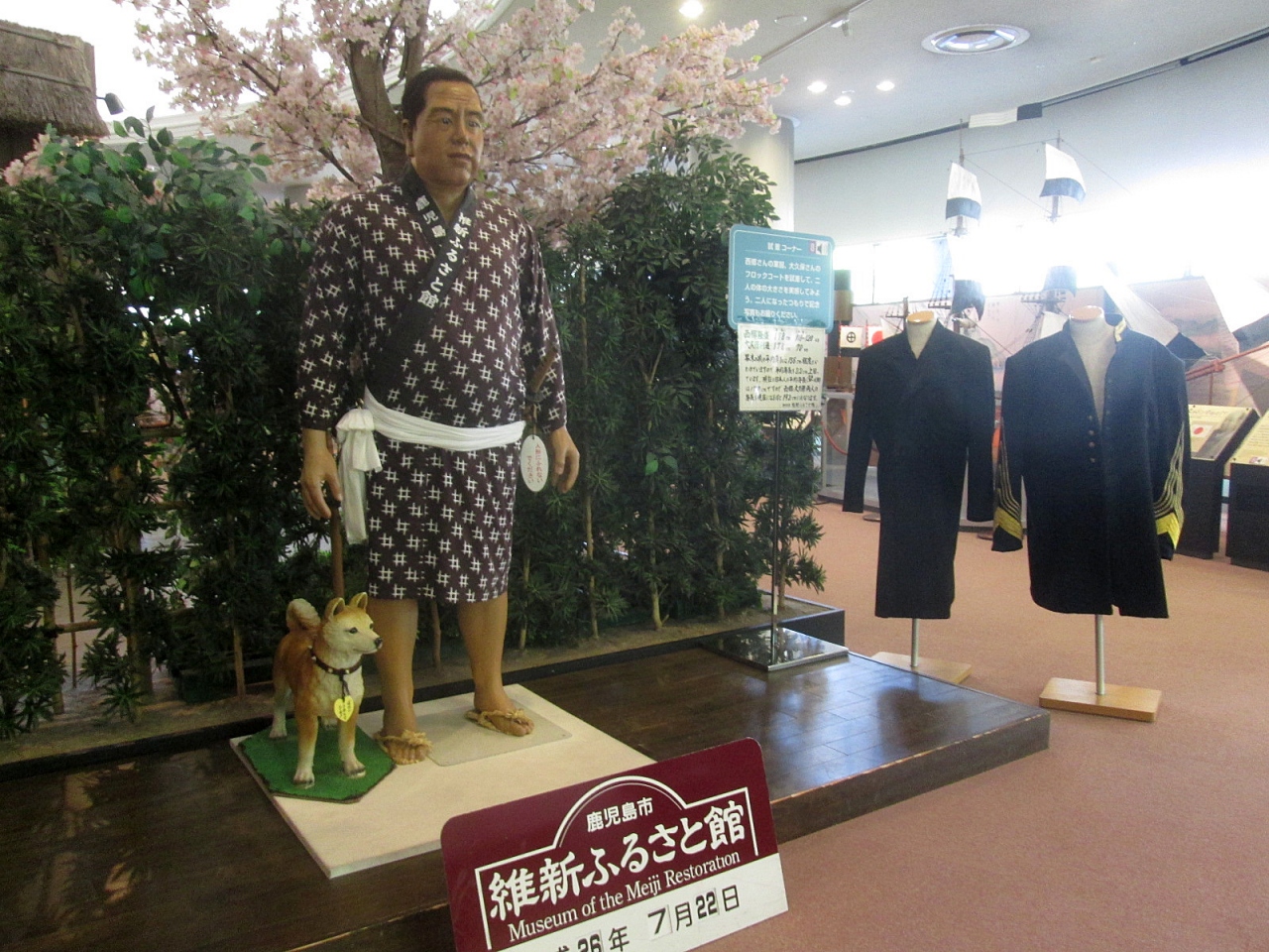 「維新ふるさとの道」と名付けられた甲突川沿いの道、ちょうど「南洲橋」の袂にある施設です。受付には、まるでデパートの案内嬢のようなコスチュームをした若い女性が3人いて驚きましたし、館内もとても綺麗です。開館は1994年らしいのですが、どうやら6年前にリニューアルしたそうです。1階は”英雄の道”と名付けられており、島津斉彬・西郷隆盛・大久保利通・天璋院篤姫に因んだ展示が中心です。模型やビデオ・タッチスクリーンなども多く、歴史が楽しく学べるように工夫されています。初代の「君が代」も聴くことができますよ。また一部に実物展示のコーナーがありますが、そこだけは写真撮影禁止になっていましたので注意して下さい。”維新の道”と名付けられた地階には、映像と精巧な人形を組み合わせたドラマ上映のあるホール、そして立体映像で歴史の一場面を学ぶことのできるブースなどもあって楽しく勉強できましたが、その充実度に予想以上の見学時間が必要になりました。この加治屋町周辺は下級武士の住宅が並ぶ場所であったため、周辺にも「西郷隆盛生誕の地」など旧跡が多いですから、この「鹿児島市維新ふるさと館」と合わせると、優に半日は必要だと思います。