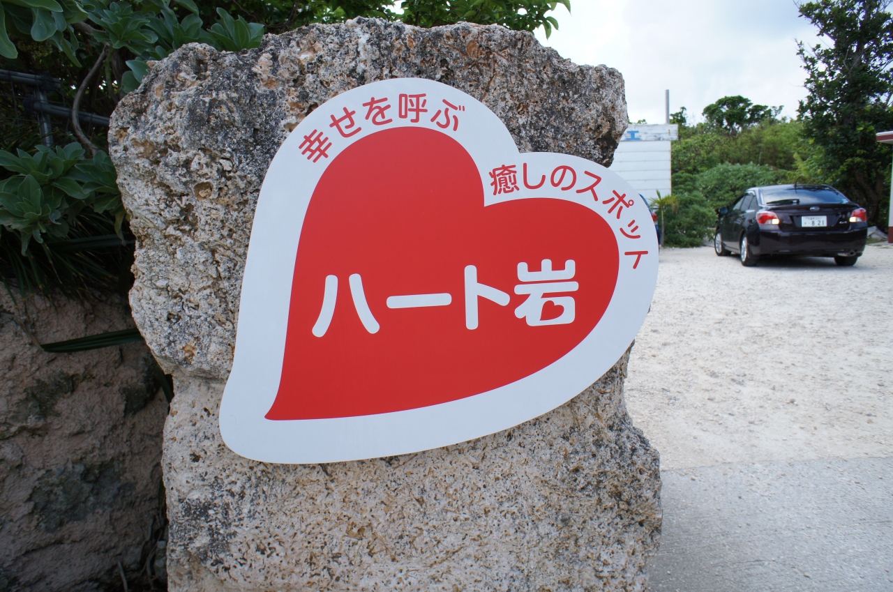 池間島をドライブ中に「ハート岩」という看板を見て、