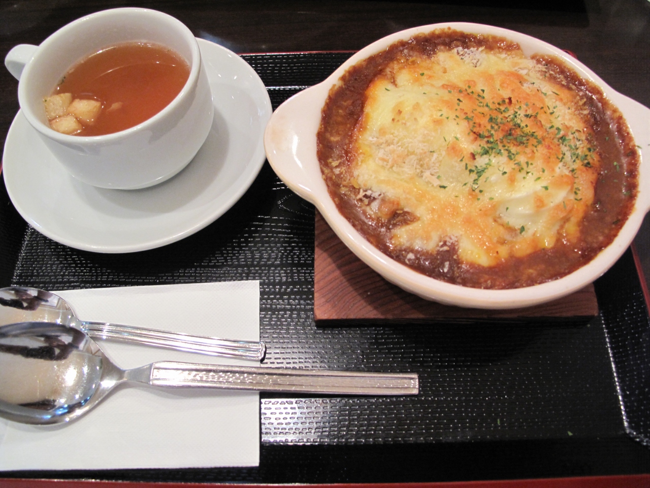 ライスの上にチーズとゆで卵スライスがあり、カレーがその上にかかっていて、しっかりと焼いてあります。香ばしく、味も美味しいです。食感としては、カレーのドリアという感じです。