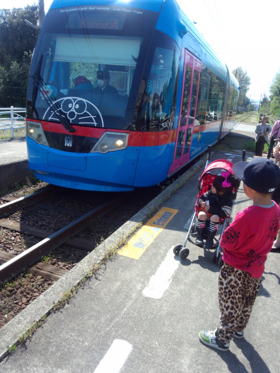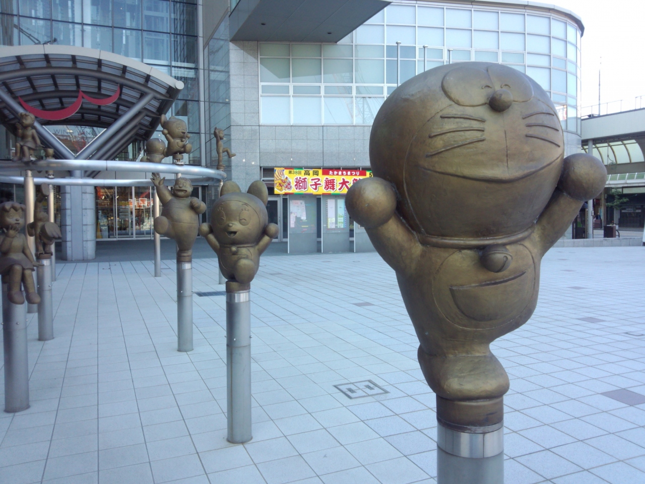 お目当てのドラえもん電車は2時間に一本くらいなので、少し待ちました。事前に運行予定時刻表を確認してから行かれると良いです。しかし、高岡駅の近くにはドラえもんたちの金色像があるので時間を待っている時にそこで遊べるのも楽しみのひとつかも…。