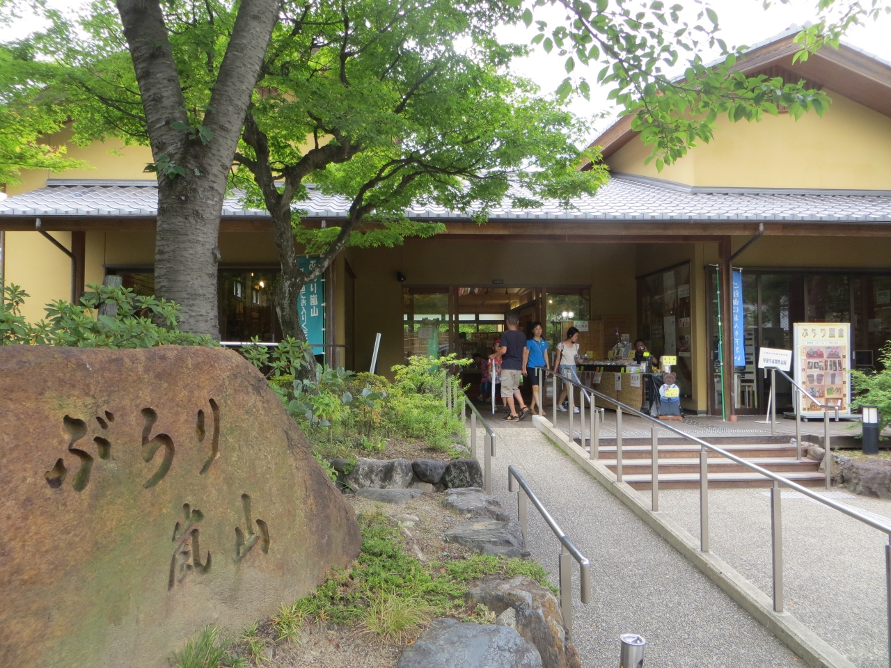 正式名称はハートプラザKYOTO ぶらり嵐山。天龍寺門前にある京都府の公共複合施設とのこと。宇治茶や京都のクラフト製品、その他京都のお土産物が販売されています。トイレ休憩にも便利な場所です。店内は結構観光客で賑わっています。入口では宇治茶の試飲も出来ます。