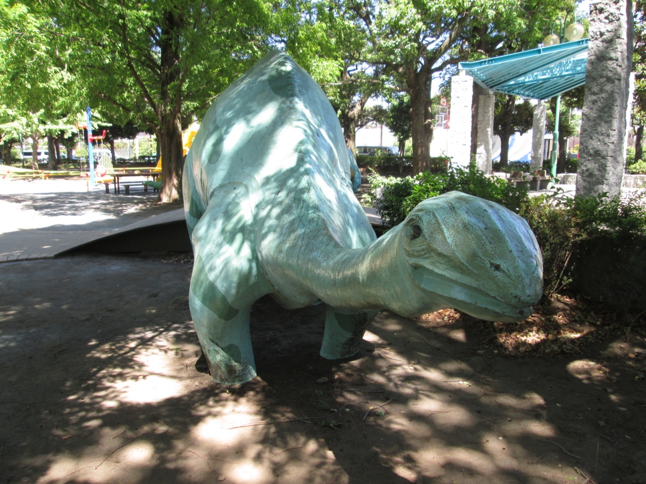 いろんな色のいろんな恐竜が、たくさんいました。公園には、木々が茂っていて、見方を変えると、ちょっとしたジュラシックパークって感じがしてきます。遊具なんかもあり、お子さん連れで寛ぐには、いい場所です。PS:夜は恐竜が目覚めるかも?