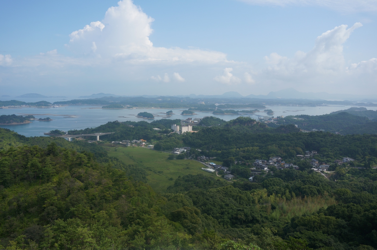 よく晴れた日だったので、海がキラキラ輝いて、島の松の緑と調和して、とても美しい景色でした。