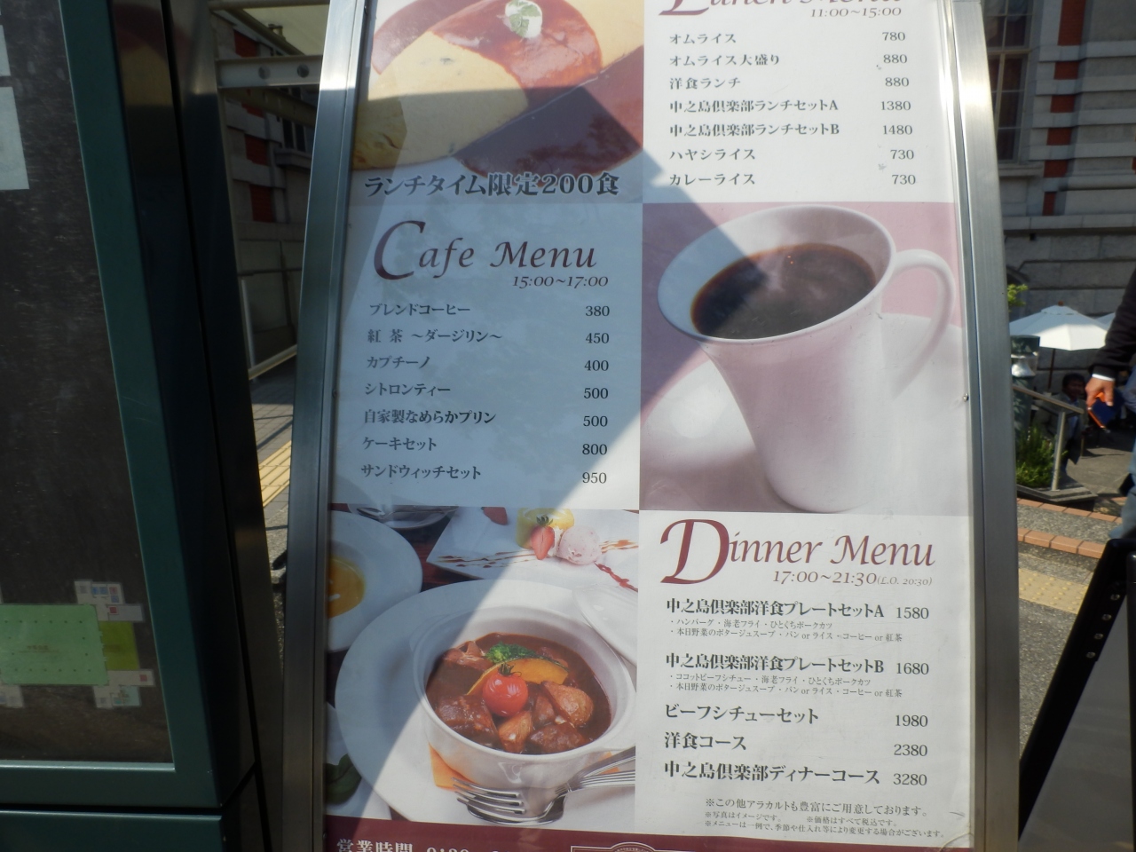 大阪の中之島にある大阪市立中央公会堂,大正7年に大阪の株式仲買人の一人によって寄付されたレトロな建物、8年ほど前に耐震化を含めてリニューアルされて当時の美しさをみせています、この地下にレトロな食堂があります、メニューはごくわずかですが味わいのあるメニューがある、ほとんどの人はオムライスを注文してる、メニューは添付写真を見てね