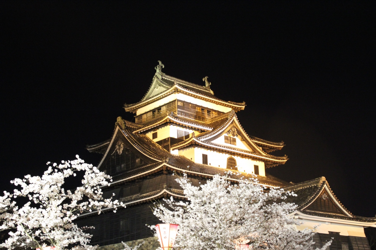 松江市内の小高い丘の上に城があり、桜の開花時期にはライトアップされ桜まつりが開催されます。日本さくら100選のひとつでもあります。昼間とライトアップされた夜では雰囲気が違いますので両方見に行くことをお薦めします。
