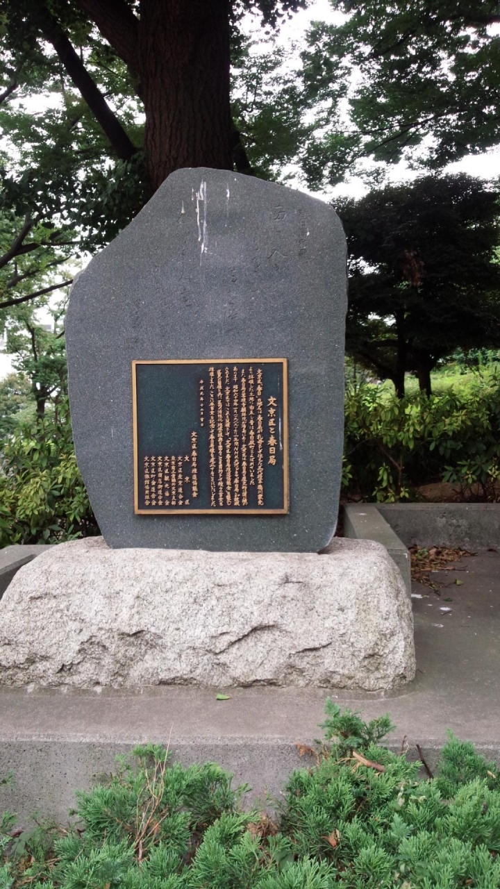 礫川公園の入口にあるのですが、後楽園駅に近い入口ではなく春日通りの入口近くにあります。
