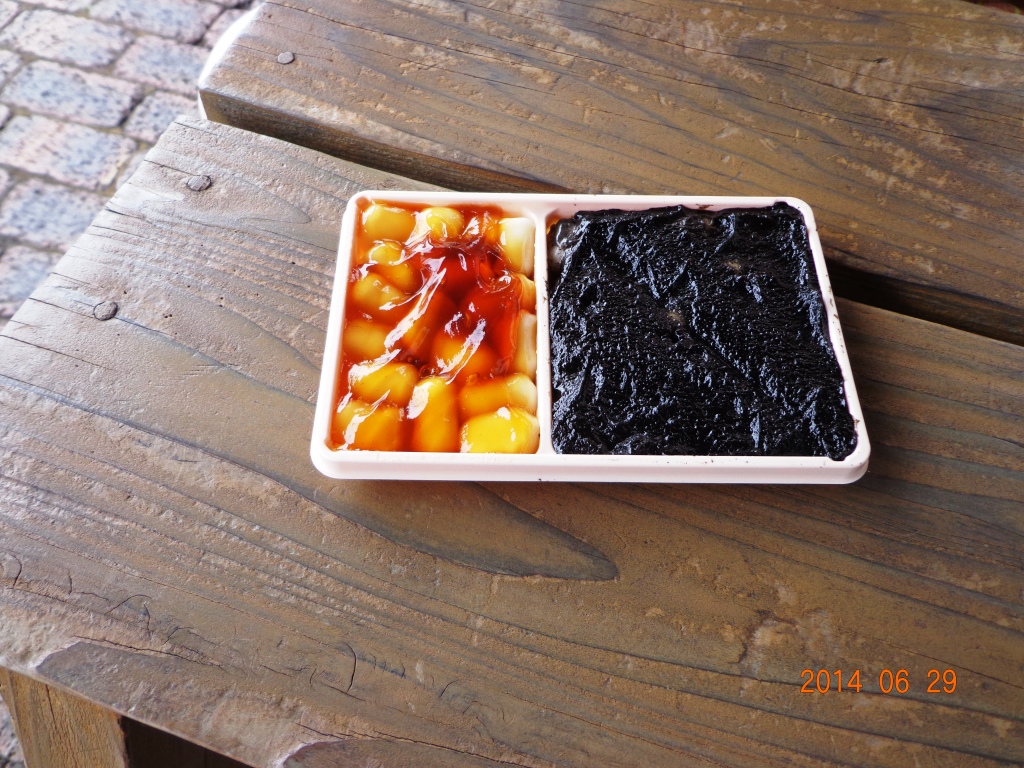 JR大沼公園駅前にある、明治38年創業のおだんご屋さん。新しく奇麗なお店で、名物の大沼だんごの他にも色んな商品がありました。大沼だんごの小390円は二人で食べるのにちょうどいい量。餡と醤油・胡麻と醤油の2種類の組み合わせがあり、どちらも醤油の方が少なく入っています。串に刺さっておらずひと口サイズで食べやすいですし、甘すぎないのが良かったです。